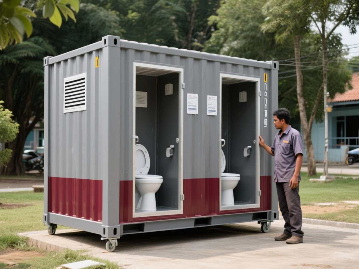 Toilet movable modern dengan desain fleksibel, mudah dipindahkan, dan dilengkapi fasilitas lengkap untuk kenyamanan.